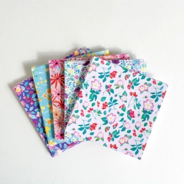 Mini Paper Pack Mix Pastel 7X7 100 un., en una combinación de 5 diseños de nuestras flores favoritas: Mosqueta, Sauco, Calafate, Rosa y Mutisia